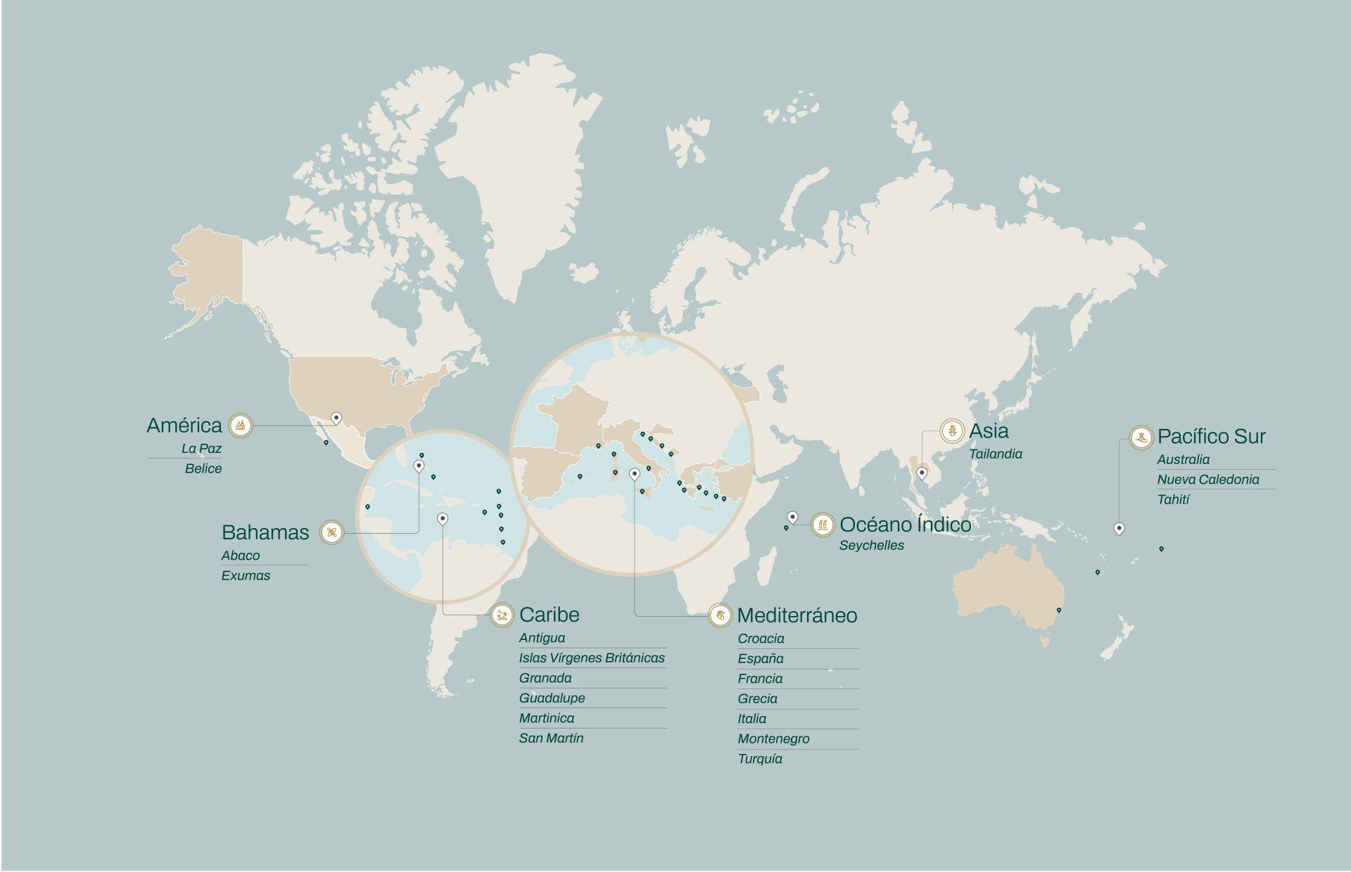 Da rienda suelta a tu pasión por el mar. Con la mayor cartera de destinos globales, ofrecemos acceso a más zonas de navegación de clase mundial que nadie. ¡Navega hasta 12 semanas al año por lo mejor del Caribe, las Bahamas, el Pacífico Sur, el Mediterráneo, el Índico y mucho más!
