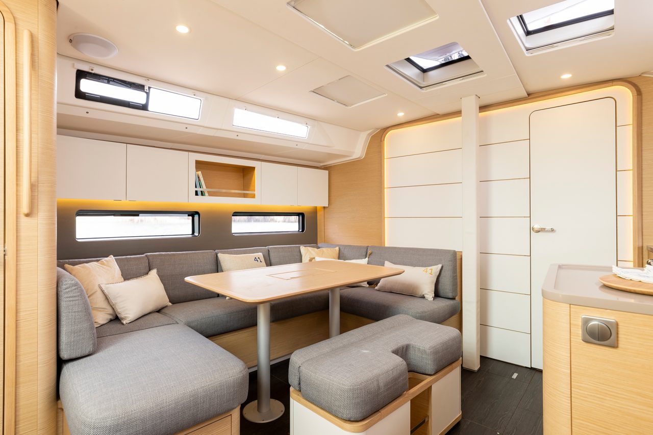Dufour ne lésine jamais sur les qualités marines de ses voiliers et le nouveau Dufour 41 en profite tout en réussissant le tour de force d’y associer l’impressionnant volume habitable de ce voilier de 4,31 mètres de large pour 12,75 de long, une largeur parmi les plus importantes du marché pour cette classe de longueur. Le Dufour 41 possède les caractéristiques marines que l’on attend d’un Dufour mais l’architecte Umberto Felci y a associé un design novateur qui en fait le 41’ le plus lumineux du marché.